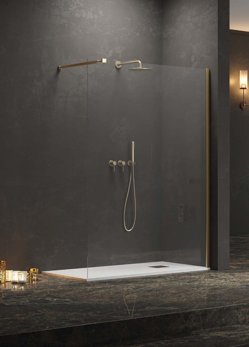 Параван Walk In 1 Oro 50/h200см. кр. стъкло 8мм. закалено Nano-skin покритие държач прав 120см. алуминиев профил цвят злато 5206836664859/Walk In 1 Oro 50/h200см. Nano