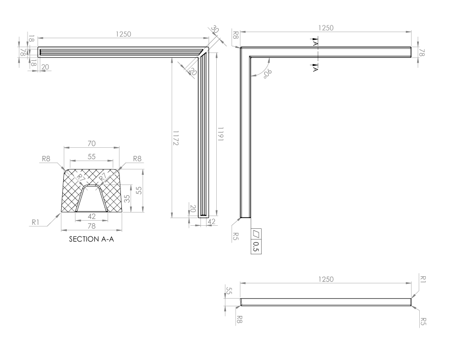 Праг за душ кабина 125/125см. квадрат цвят 343 White Frappe Граниксит 5701125343