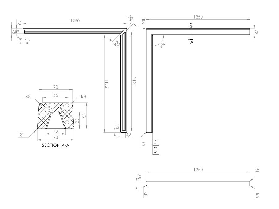 Праг за душ кабина 85/115см. квадрат цвят 343 White Frappe Граниксит 5701125343