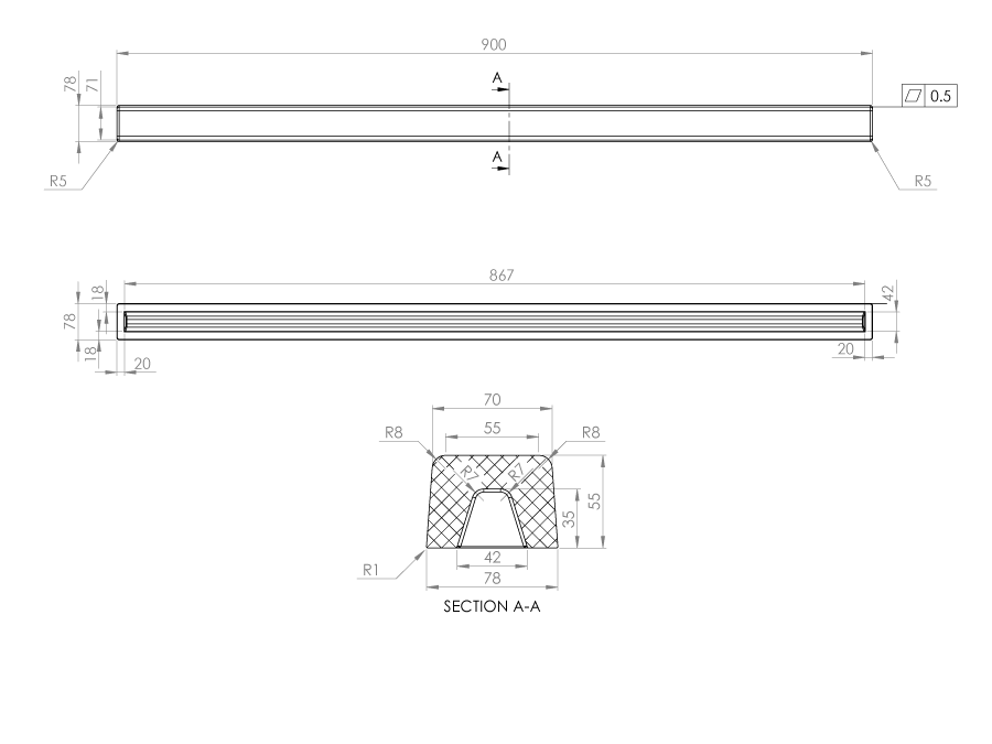 Праг за душ кабина 90/h5.5см. прав със заоблен край цвят 899 Belogradchik Rocks/Кафяв граниксит 5690899/заоблен край