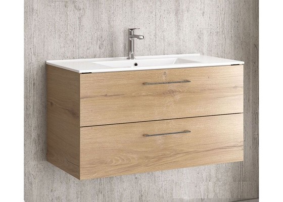 Промо Комплект New Elsa1 60/1 Шкаф долна част 58/45/h48см. Окачен МДФ с меламиново покритие дървесен цвят Elvezia 8502 две чекмеджета с механизъм soft close и мивка LT7506 60/47/h18см. порцеланова бяла с отвор за смесител и преливник и Шкаф горна част 60/13/h60см. МДФ с меламиново покритие дървесен цвят Elvezia 8502 БЕЗ Аплик