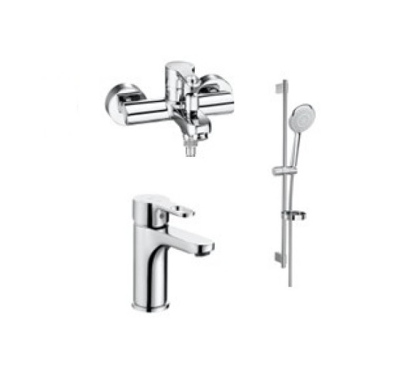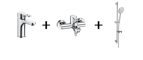 Промо Roca Atis 3 в 1 хром Смесител за мивка Atis стоящ едноръкохватков без изпразнител хром A5A3183C00 Смесител за вана/душ Atis стенен двудупков едноръкохватков хром A5A0283C00 Тръбно окачване Sensum 80см. с аксесоари душ слушалка ф13см. кръг двуфункционална окачалка подвижна шлаух 170см. и сапунерка хром A5B9407C00 Код комплект Промо A5A3183C00+A5A0283C00+A5B9407C00