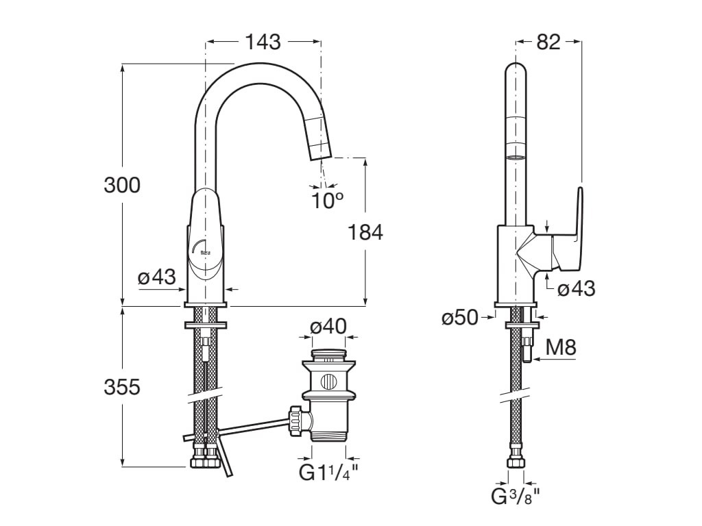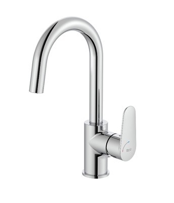 Смесител за мивка Victoria Plus с размер 8.2/14.3/h30см. Модела е стоящ едноръкохватков /странична ръкохватка/ с висок чучур h=18.4см. с изпразнител и гъвкави захранващи връзки в хром цвят. A5A404FC00/Chrome