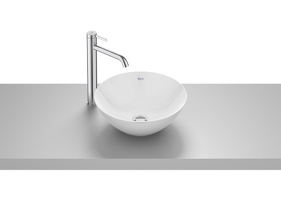 Мивка върху плот Bol с размер ф35/h13.5см. Модела е овален тип купа в бял цвят без отвор за смесител и без преливник, изработен от иновативен естествен материал FINECERAMIC за по финни контури на изделието A32787L000/White.