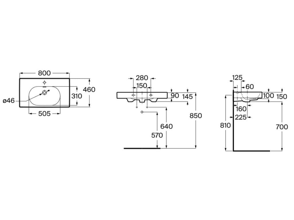 Мивка Meridian-N с размер 80/46/h15см. в бял порцеланов цвят. Модела е стенен с отвор за смесители и преливник A327745000/White. Без сифон!