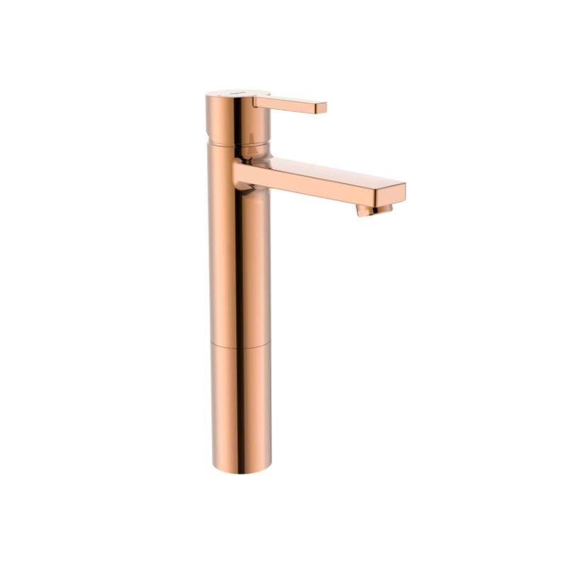 Смесител за мивка Naia ф4.6/13.2/h28.5см. Cold Start стоящ висок чучур h=21.8см. едноръкохватков без изпразнител цвят розово злато A5A3B96RG0/Rose Gold