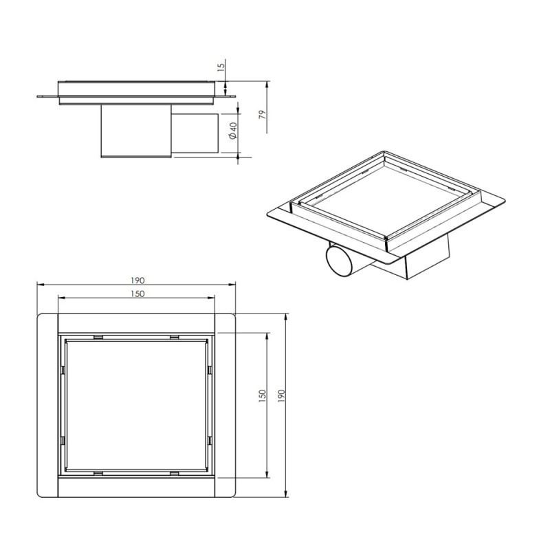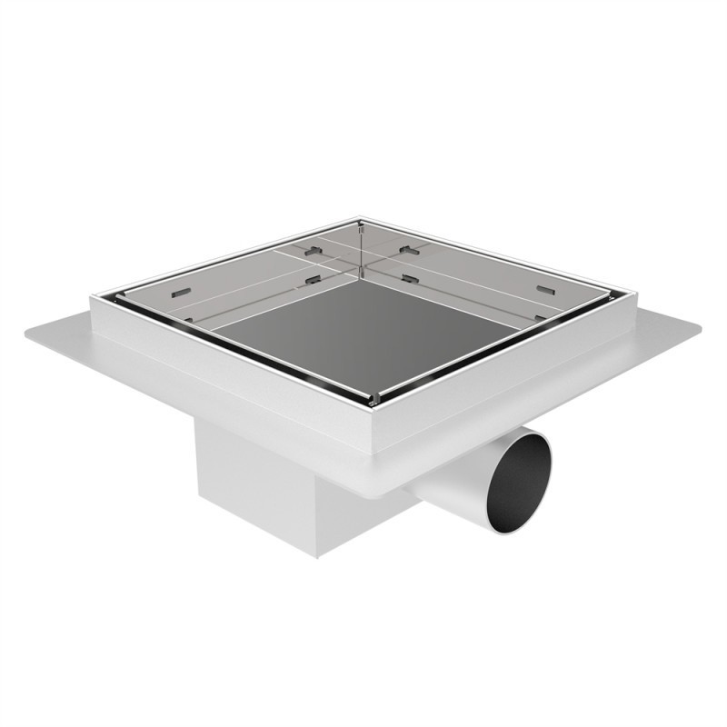 Сифон подов Интер ICD6415C 15/15/h7см. за вграждане на плочка неръждаема стомана изходна тръба ф5см.