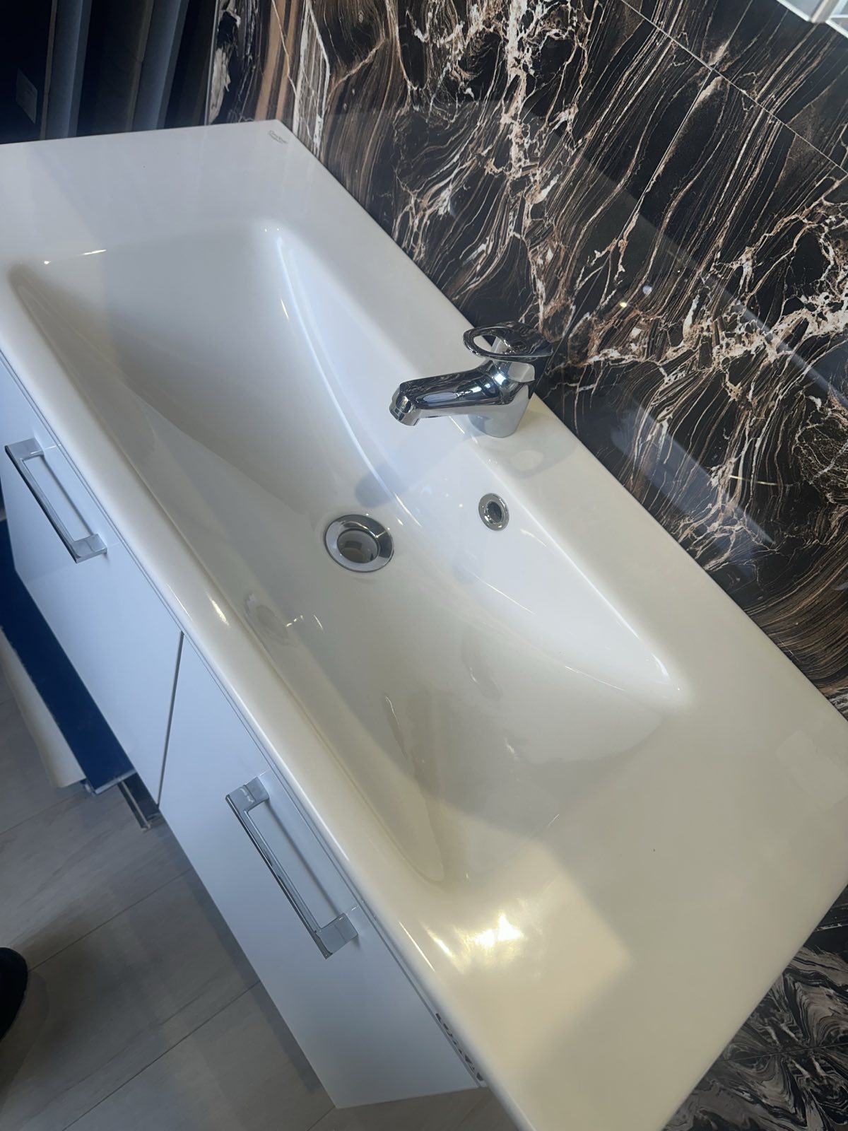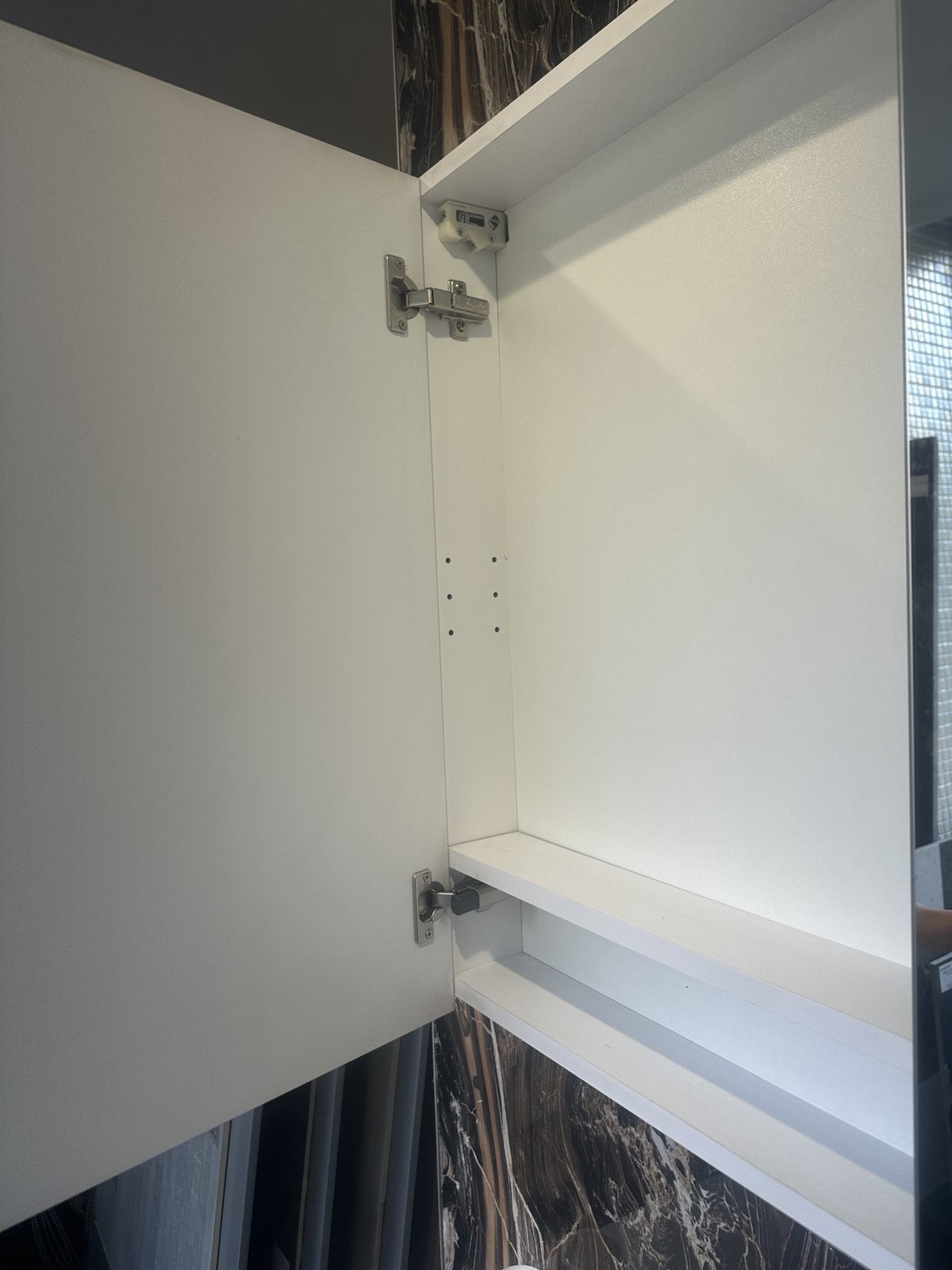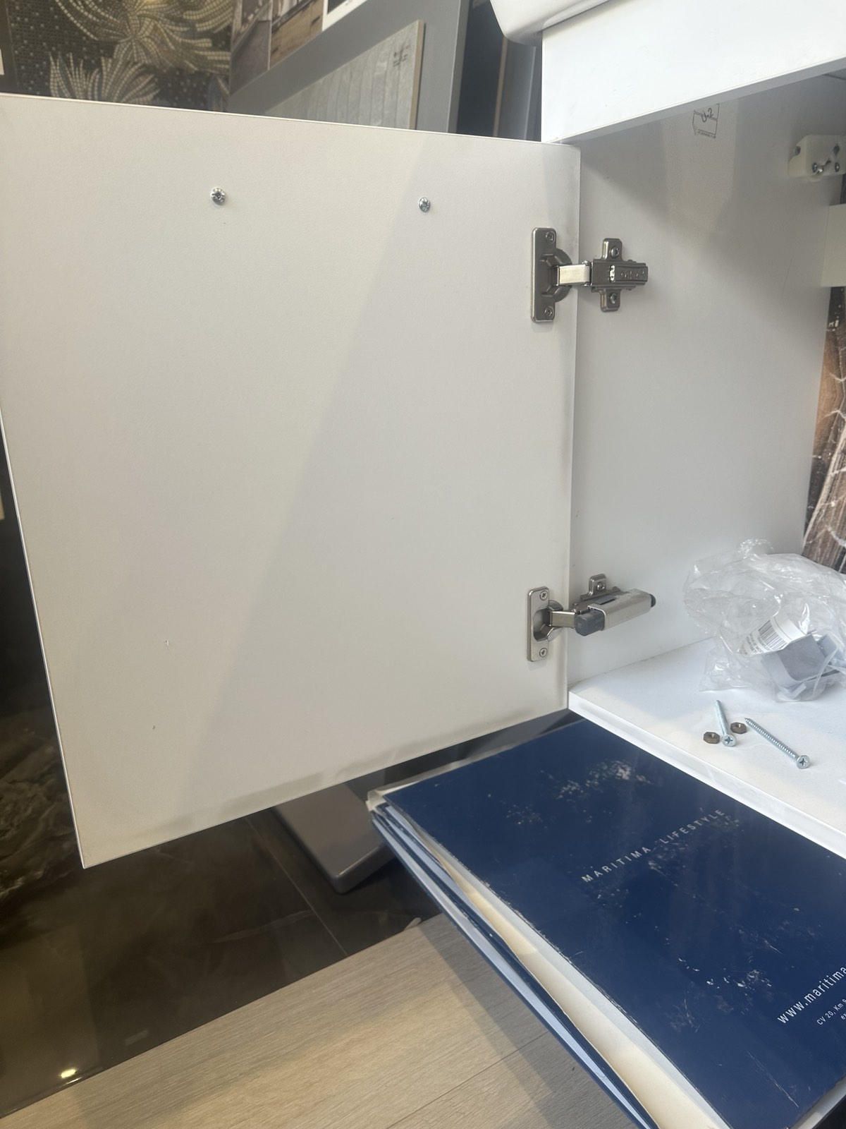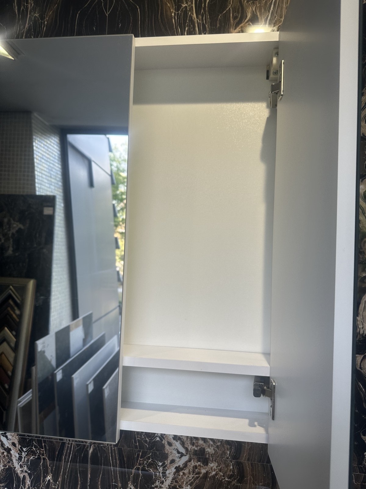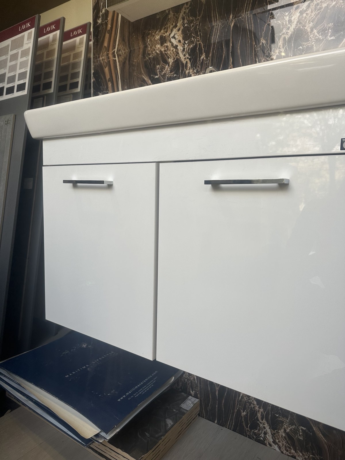 Шкаф Bafa Set 85см. бял и мивка бяла с отвор огледална лента на д.ч.