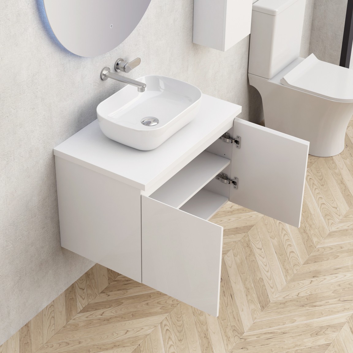 Шкаф долна част BG5155-75W+7546-30 76/56/h48.5см. Окачен PVC бял две врати с DTC панти с механизъм soft-close
