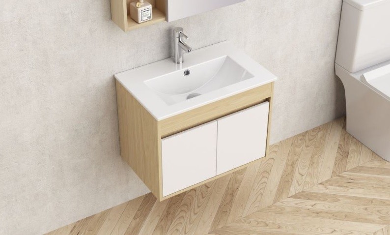 Моделът е окачен, изработен от PVC в бял и дървесен цвят.