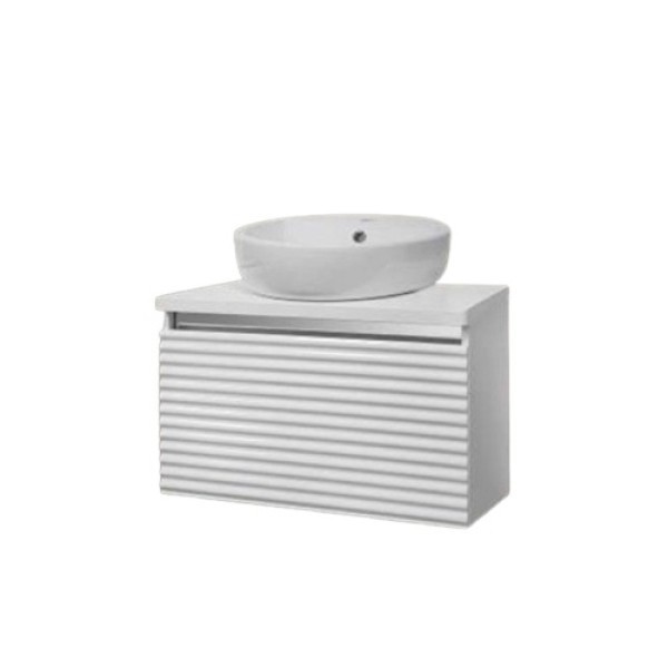 Шкаф долна част с мивка Нора с размер 60/45/h55см. Модела е окачен от PVC в бял цвят, едно чекмедже с механизъм soft close, без дръжка. Мивка порцеланова бяла с отвор за смесител и преливник 3538479.