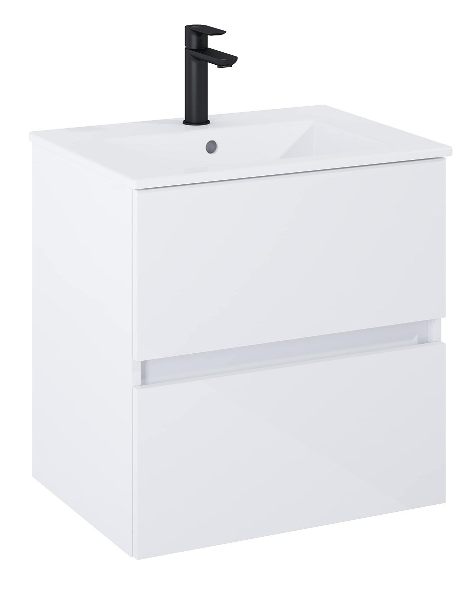Окачен шкаф за баня с модерен дизайн в бял гланц.