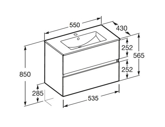 Моделът е практично решение с две чекмеджета и включена порцеланова мивка.