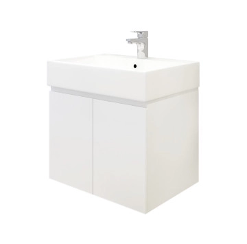 Шкаф огледало Лагос 60/18/h60см. PVC бял с вградено Led осветление, една врата с механизъм soft close, панти хром-никел, два стъклени рафта и ниша с два PVC рафта