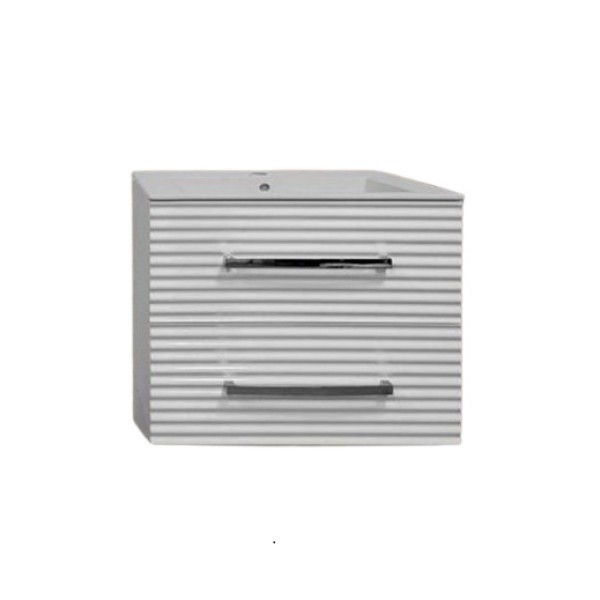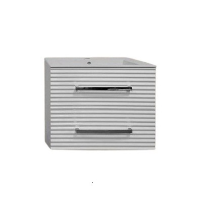 Шкаф долна част Сузана с размери 65/43/h54см. Окачен PVC бял две чекмеджета с механизъм soft close с дръжки хром и мивка порцеланова бяла 3538451