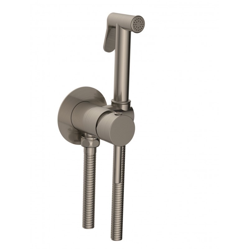 Смесител с хигиенен душ Debra 3314BS. Модела е за вграждане, кръгъл с аксесоари - хигиеничен душ, слушалка еднофункционален с шлаух и окачалка в цвят никел мат/четкан/Nickel.