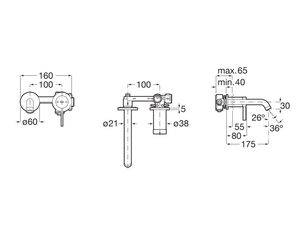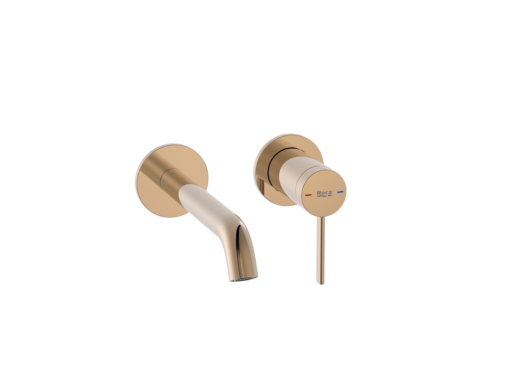 Смесител за мивка Ona. Моделс е стенен за вграждане двудупков едноръкохватков и чучур с размер 17.5см. розово злато външна част A5A359ERG0/Rose Gold. Забележка: Окомплектова се с кутия/вътрешно тяло A5E3501RG0.