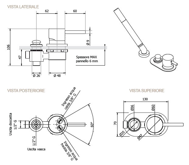 Смесител за вана Mix стоящ едноръкохвaтков с превключвател и душ слушалка в хром MIXXCRO