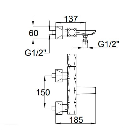 Смесител за вана/душ Ikon стенен с аксесоари душ слушалка шлаух и окачалка малка стационарна, черен мат 74.012 NG/Black matt