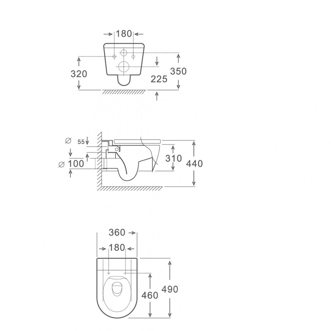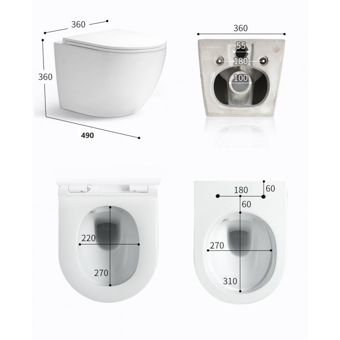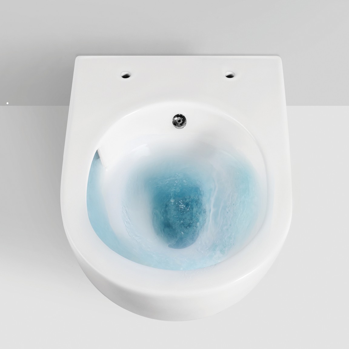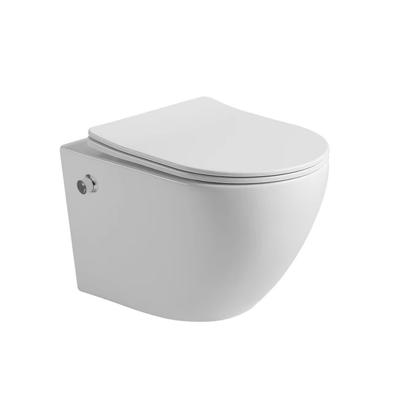 Стенна тоалетна чиния Интер 4937W Bidet 36/49/h36см. задно оттичане , с Tornado обливане , порцеланова бял гланц с биде система с възможност за регулиране на топла/студена вода хром и капак UF PVC бял 4937W Bidet/6988354277443/White