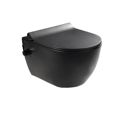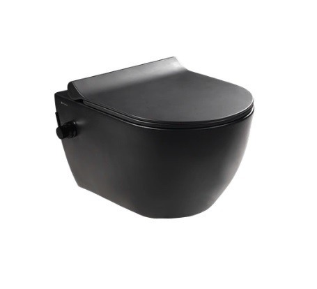 Стенна тоалетна чиния Hill Rimless с биде черен мат